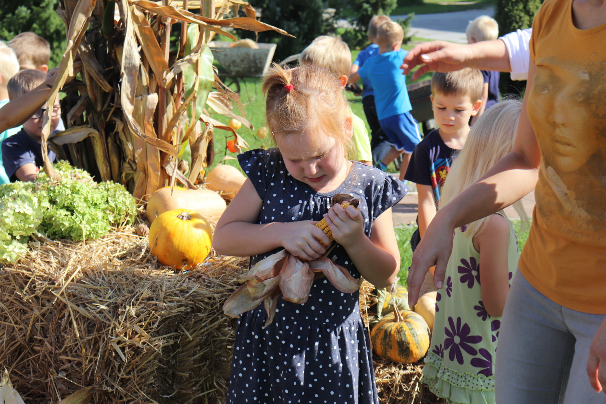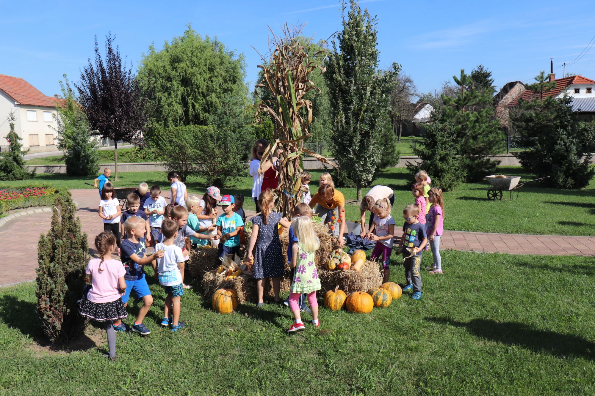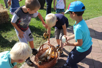 Dok je starija grupa „Vjeverice“ bila okupirana uređenjem, mlađa je slušala priču „Juha od bundeve“. Nakon posjete knjižnice mlađa grupa znatiželjno je koračala prema parku kako bi vidjela maskotu centralnog parka „Jesenka debeljka“ kojeg su izradili njihovi stariji prijatelji.